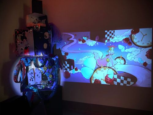 “A Butterfly Dream?” is a storytelling project. Using physical installation and a projector, I tried to express the concept that "death is not the end, being forgotten is". Cardboard boxes are piled up as the project's main body for the physical part. In the different cardboard box rooms, I followed the storyline to build up suitable and dreamy scenes. Mirrors, fabric, beads, resin, cotton, and clay are used to enrich the setting. The installation's lighting and the video switch are controlled by the Arduino board and a touch sensor. When the audience touches the sensor, the video will switch to the next part, and the led light in the corresponding setting will turn on. Since the led light is weak, there is also an extra flashlight for the audience to explore more details in the inner part. For the video part, I drew every frame first, animated and add sound effects on them in Adobe Premiere