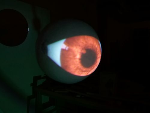 The projection mapping project describes four stages of the world, from simple colorful geometries to the natural world, to human society, and finally turns into pure white color. Personally, I believe it is an infinite loop: starting from chaos and shapes, gradually being organized, finally being broken and destroyed, and returning to the chaos. The eye is a medium for humans to see the virtual world and a channel to express emotions, so I decided to use animation and color changes in the eyes as a hint of stage changing. The composition is designed based on the storyline of the four stages, which are two hanging white spheres(eyes), an arch in irregular shape(nature), and boxes(city). Foam core and inflatable ball are used to build up the overall structure, and mylar is used to cover the ground under the installation.